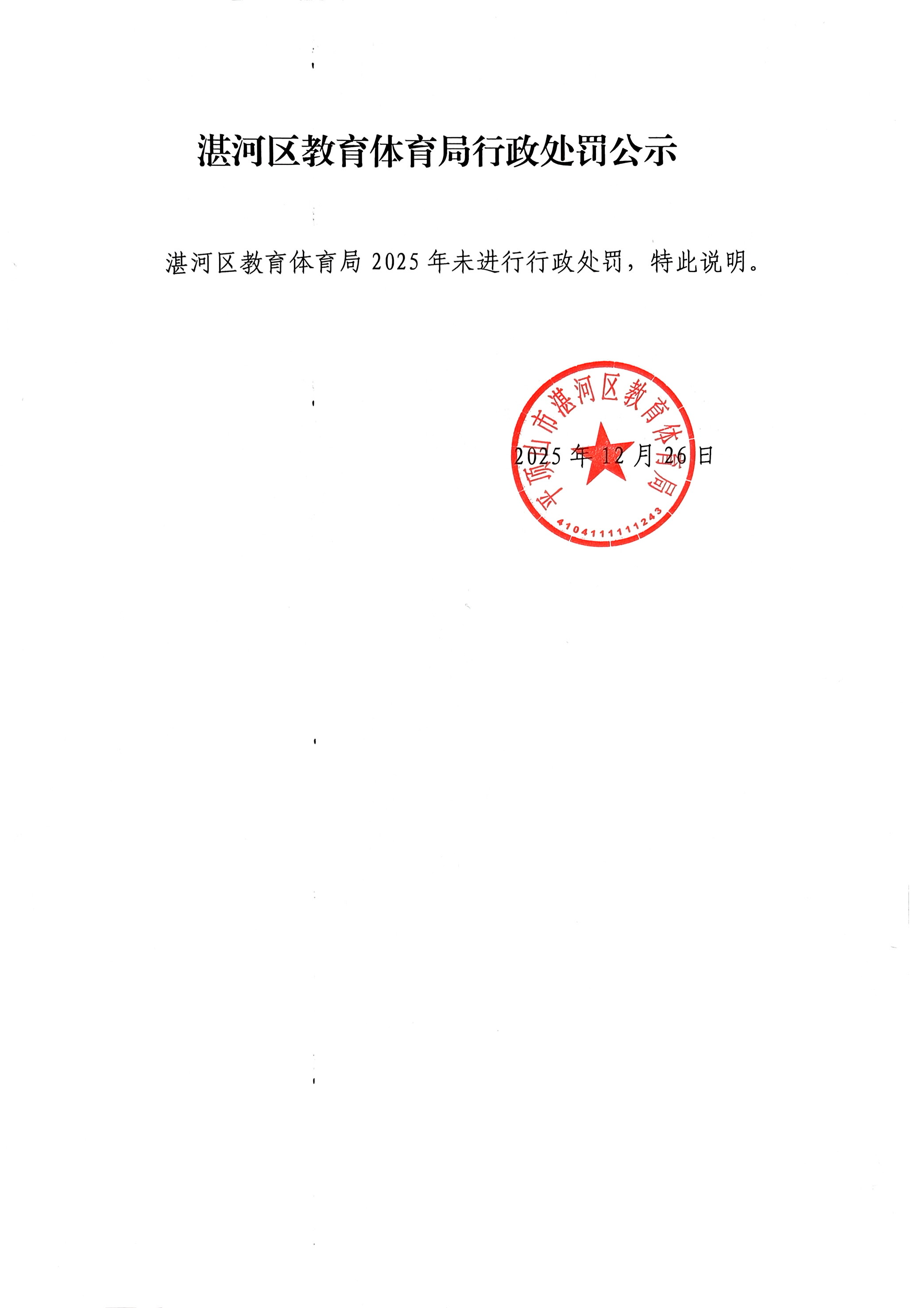 湛河区教育体育局行政处罚公示
