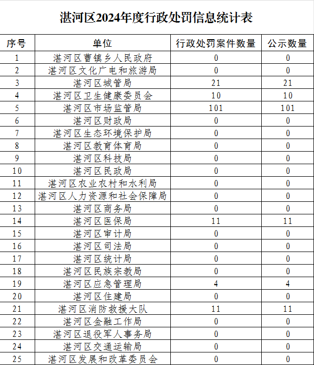湛河区2024年行政处罚信息统计表