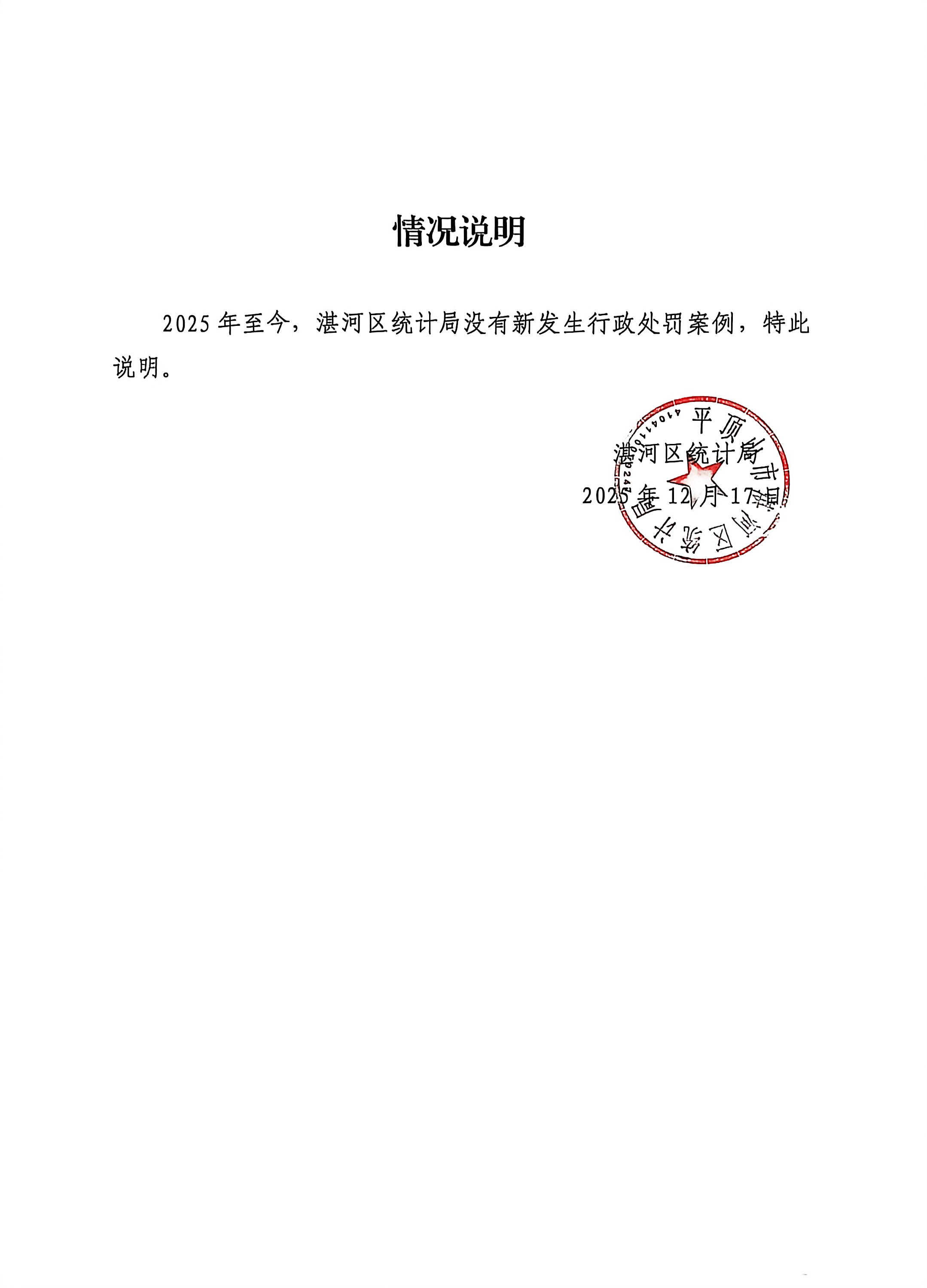 2025年湛河区统计局行政处罚公示