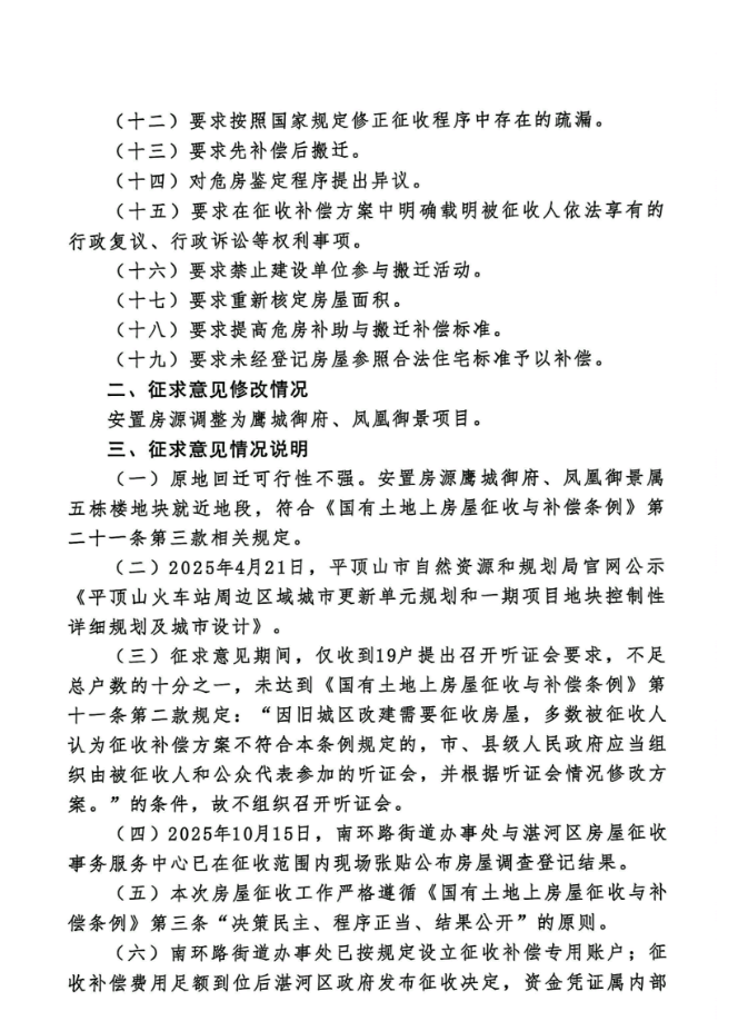 《平顶山市湛河区人民政府关于对平顶山市火车站片区城市更新项目国有土地上五栋楼地块房屋征收补偿方案征求意见情况和修改情况的公告》.pdf